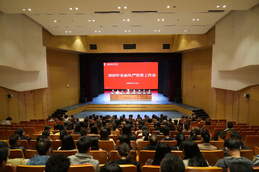 3月25日下午,我校在艺术中心歌剧舞剧厅召开2026年全面从严治党工作会,回顾总结过去一年工作成效,安排部署2026年全面从严治党年度重点工作。全体在校校领导,校党委委员、纪委委员,全体副科级以上干部,校纪委专职纪检监察干部,教职工党支部书记和纪检委员参加会议。省纪委监委第四监督检查室副主任赵晓波到会指导,校党委副书记强陆平主持会议。