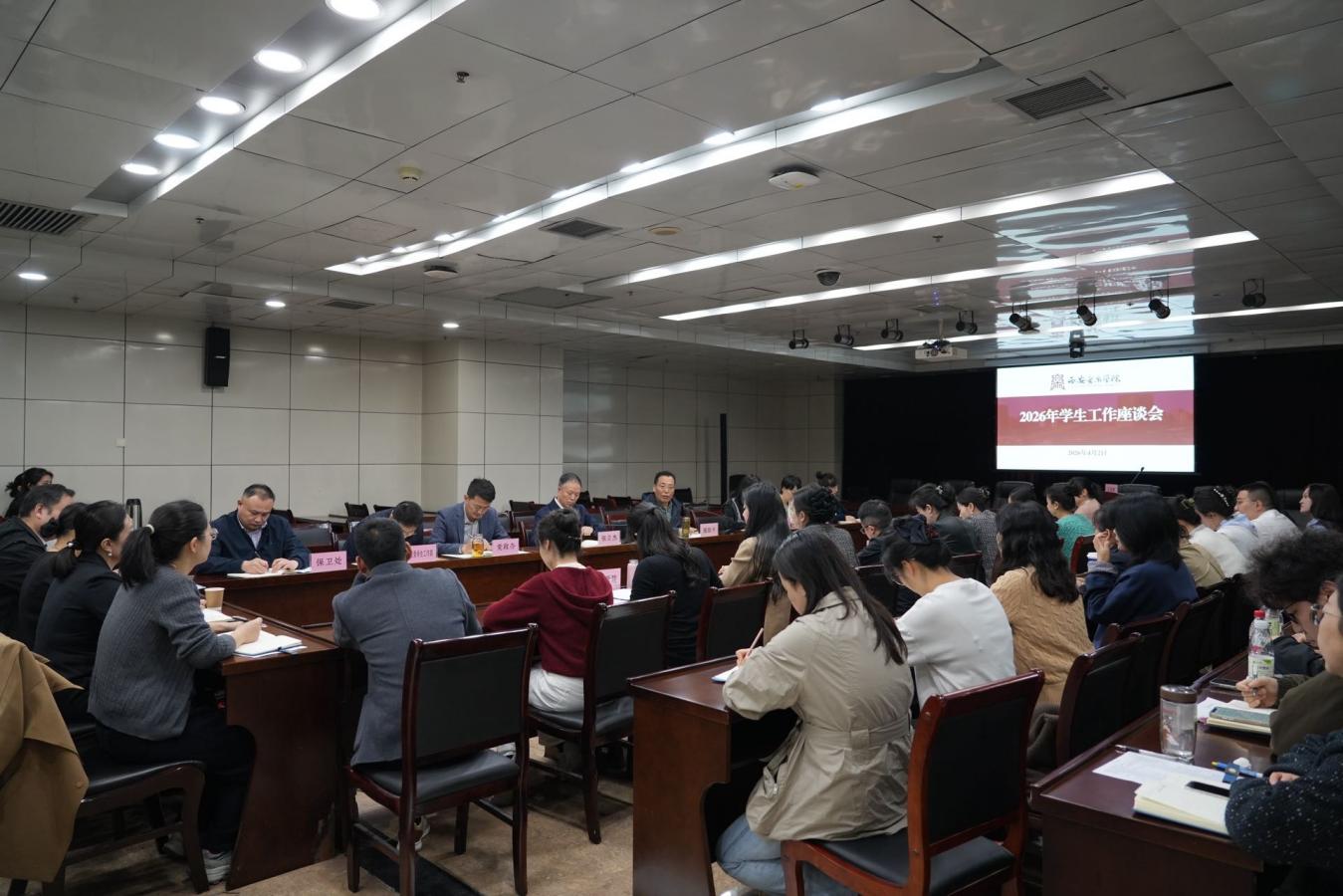 为全面落实立德树人根本任务,进一步抓实思想教育、严密日常管理、落实安全责任,确保学生在稳定安全的前提下成长成才,4月2日上午,西安音乐学院2026年学生工作座谈会在机关第二会议室召开。校党委书记张立杰、党委副书记强陆平出席会议。党政办公室、党委宣传(统战)部、党委学生工作部等部门负责同志,各院(系)专职副书记、专职辅导员及学工部全体干部参加会议。会议由强陆平主持。