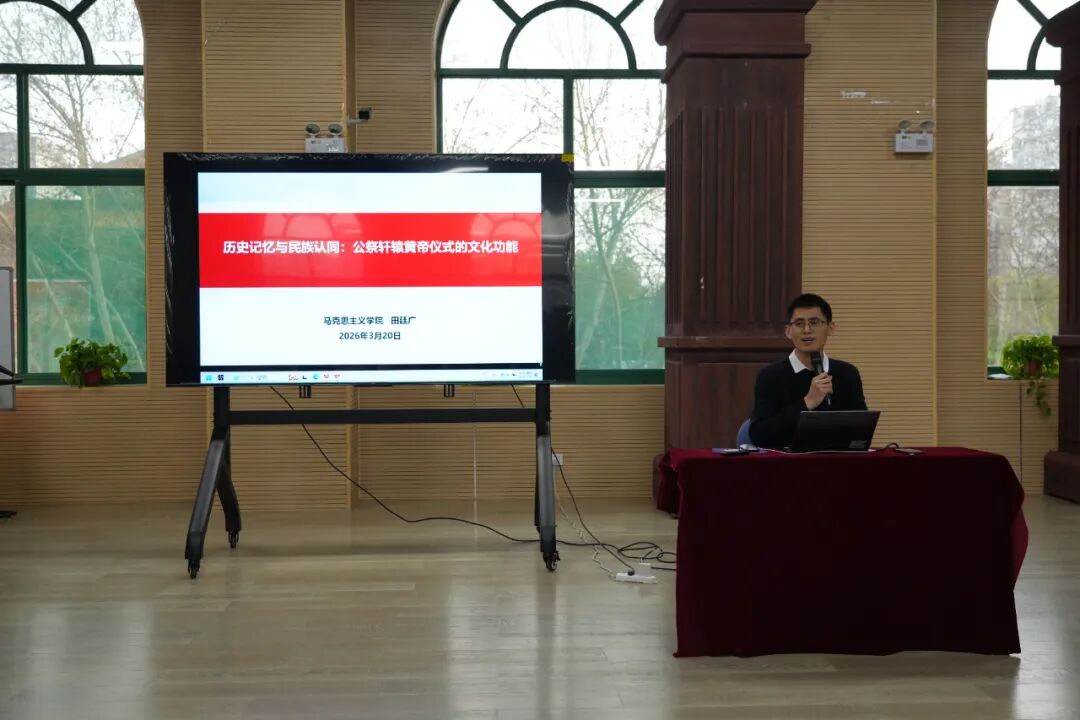 为厚植参演师生家国情怀、夯实思想根基,3月20日,艺术处邀请马克思主义学院田廷广老师为参演学生作《历史记忆与民族认同——公祭轩辕黄帝仪式的文化功能》专题讲座,将艺术实践与思政教育深度融合,引导学生在寻根祭祖中坚定文化自信,传承民族精神。