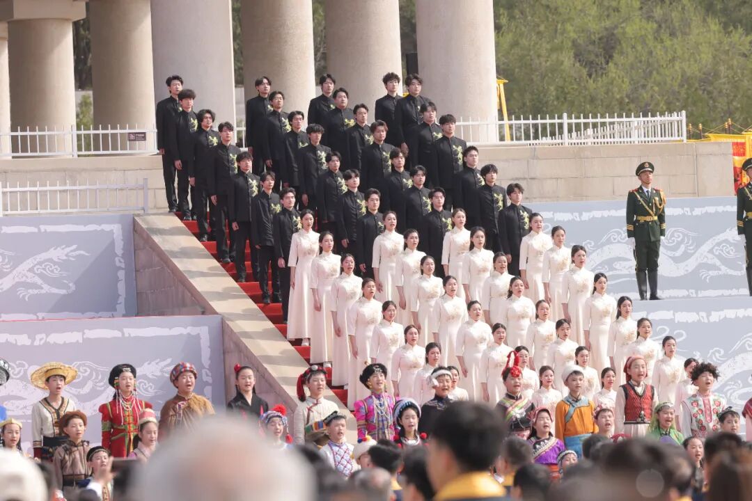 典礼共八项仪程,我校承担第二项唱《黄帝颂》和第六项《乐舞告祭》。自1月28日接到任务以来,学校高度重视,艺术实践管理处组织音乐教育学院(124人)和舞蹈学院(26人)迅速投入排练。4月1日起全体演职人员赴黄陵进行5天实地彩排,师生以高度的政治责任感、饱满热情和专业技能,克服困难、精益求精,利用休息时间加练打磨,确保演出效果精彩呈现。