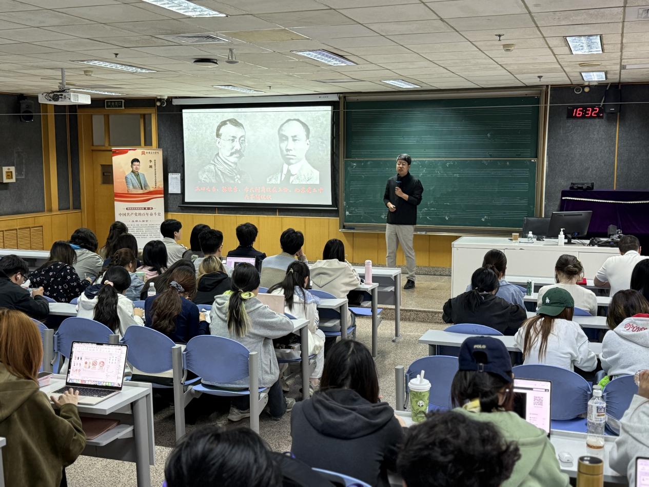 活动中,李圳教授以开国大典珍贵原声为切入点,围绕救国、兴国、富国、强国四个历史维度,系统梳理了中国共产党团结带领全国各族人民不懈奋斗的光辉历程。从赵梦桃的劳模精神到三线建设的家国情怀,从恢复高考的历史决策到新时代科技自立自强的壮阔实践,李圳教授以丰富史料和鲜活案例,深刻阐释了党的百年奋斗重大成就和历史经验。整场报告主题鲜明、脉络清晰、内涵丰富,既有理论深度,又有现实启迪,引导在场师生进一步坚定理想信念、厚植家国情怀。