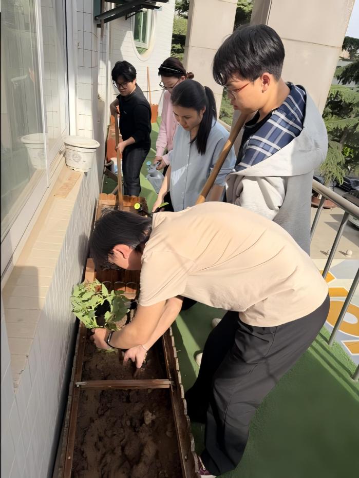 为深入落实“五育并举”育人理念,探索以劳育美、以美润心的实践路径,坚守立德树人根本使命,4月10日下午,人文学院同学们在学院阳台组织开展“在春天种下一个小希望”劳动实践活动,师生们亲手种下番茄苗,在劳动中感受生命之美,在耕耘中滋养心灵。