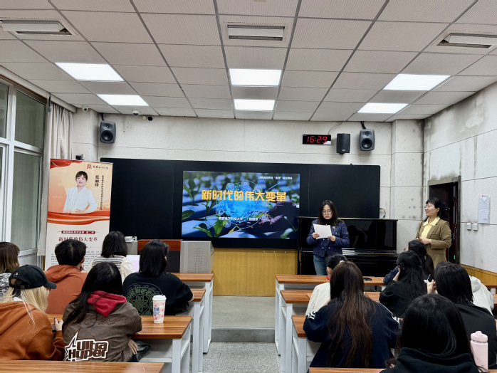 为深化思想政治教育,丰富课堂教学形式,4月8日下午,作曲系承办的“新时代的伟大变革”金课巡讲在4号楼203成功举办。此次讲座邀请了西安电子科技大学马克思主义学院教授张丽珍主讲,作曲系副主任雒鹏翔主持,系代表老师与众多学生一同聆听学习。