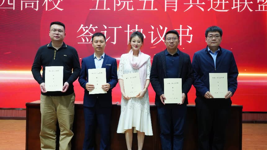 签约授牌环节中,现代音乐学院分党委书记周冰与各联盟学院代表共同签署合作协议,西安石油大学新能源学院党委书记颜庭星为各单位授牌,标志着“五院五育共进”联盟正式成立。联盟以“五院协同、五育融合”为核心模式,致力于构建“理论+实践”“技能+素养”的育人体系,推动德育、智育、体育、美育、劳育有机融合。