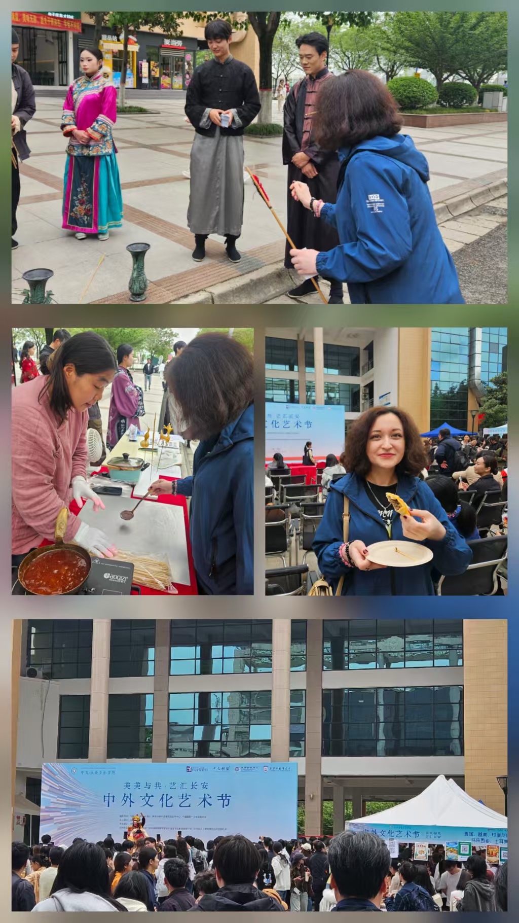 活动期间,我校师生代表还参加了“美美与共,艺汇长安”中外文化艺术节暨国际美食节。现场,大家体验了西安外国语大学31个国家的国际学生现场制作的本国特色美食,近距离感受不同国家的饮食文化魅力;同时欣赏了中外学生同台演绎的精彩节目,太极舞的刚柔并济、吉尔吉斯斯坦舞的灵动等,展示了多元文化交融共生的美好景象。