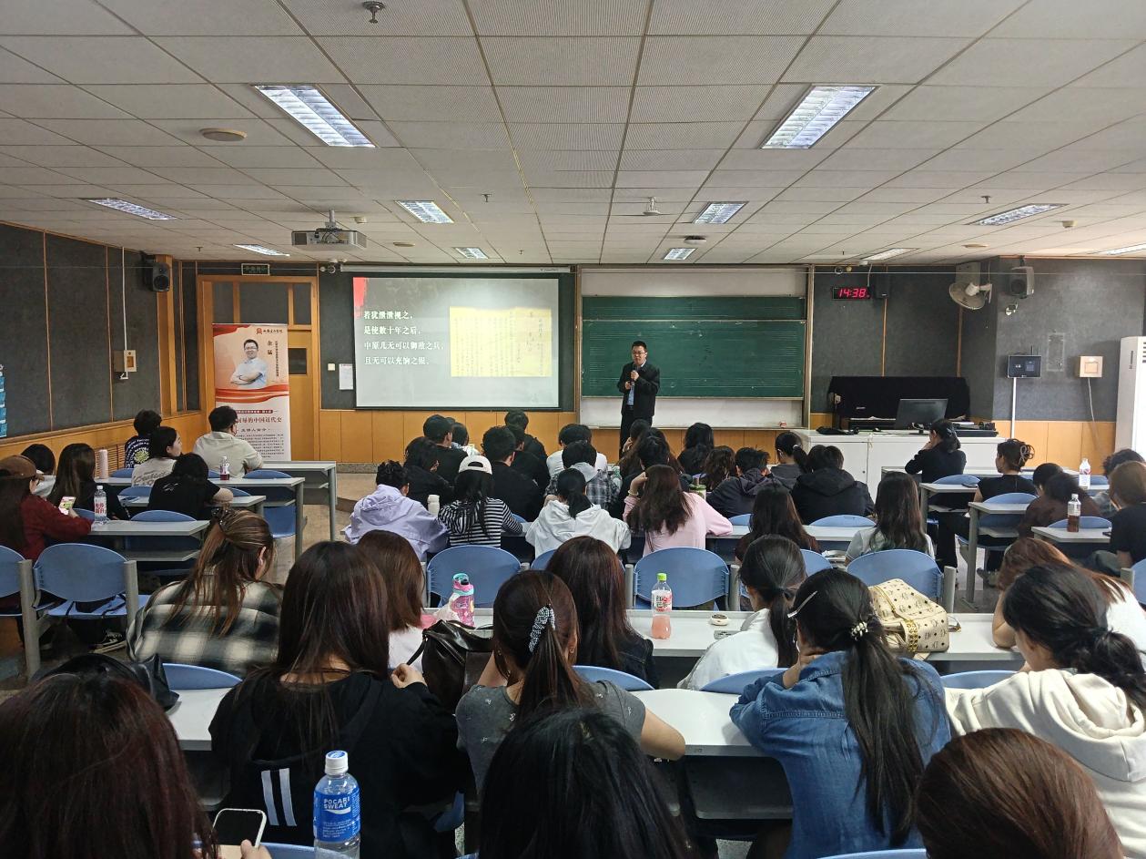 授课环节,余猛副教授以历史时间轴为主线,系统回溯了近代中国的苦难历程与抗争史诗,并深刻剖析了近代中国在历次抗争中屡遭挫败的深层原因,清晰阐释了中华民族生生不息、不屈不挠的伟大抗争精神。从爱国官兵的浴血奋战到人民群众的自发抵抗,从仁人志士的救亡图存到全民族众志成城抵御外侮,他以鲜活史实生动刻画了中国人民面对强敌不甘屈服、不畏牺牲、顽强抗争的民族风骨。