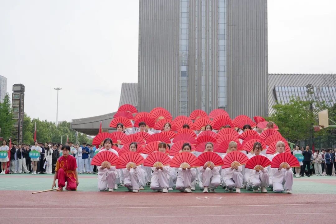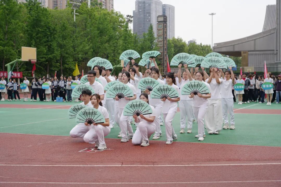 话音落定,开幕式展演热情登场。师生同台,精神饱满,神采奕奕,以昂扬向上的姿态诠释着体育精神,展现了艺术之美、运动之力和青春之气,将现场气氛一次次推向高潮。