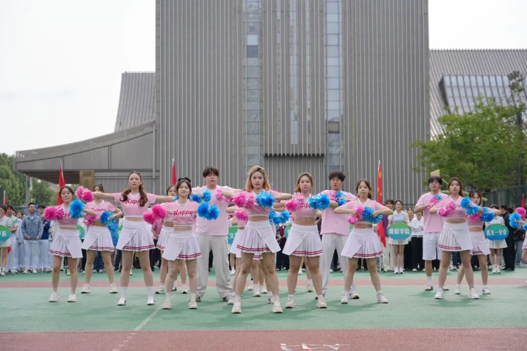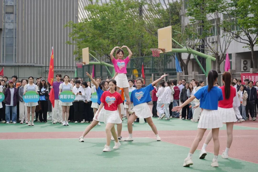 音乐教育学院的啦啦操《Get up》率先点燃全场,队员们伴着动感节拍,以利落身姿跳出青春朝气。