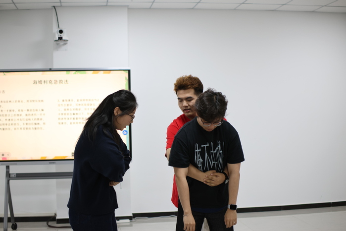 在专题讲解环节,西安体育学院研究生徐涵涵、杜涵斌围绕“意外伤害急救”与“运动损伤防护”两大主题,进行了系统细致的讲解,重点演示心肺复苏、海姆立克急救法等实用技能,以及常见运动损伤的预防与处理方法。讲解内容贴近生活、通俗易懂、操作性强,为声乐专业学生的身心防护提供了科学指导,在场师生纷纷表示受益匪浅。
