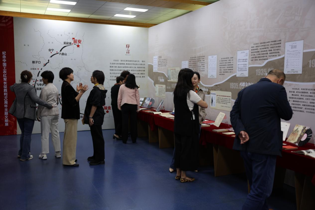 开幕式结束后,全体与会人员参观“纪念中国工农红军长征胜利90周年主题文献展”,共同走进红色文献背后的故事,感悟不朽的长征精神。展览以中央工农红军长征路线为脉络,将两万五千里征途与馆藏红色音乐文献融合,通过乐谱、书籍、唱片、磁带等多元载体,生动再现了长征路上的音乐记忆与精神图谱。
