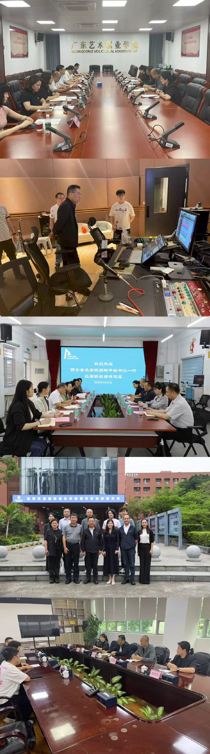调研组先后走访了广东艺术职业学院、叔伯兄弟音乐基地、广州市艺术学校、深圳艺术学校、深圳歌剧舞剧院等单位,实地察看了各单位专业教学、舞台实践和生产实训的开展情况,深入了解中高职学校的办学特色、人才培养模式、师资岗位需求及实践育人合作空间,与各单位领导、相关部门负责人及教师代表深入座谈交流,详细推介我校2026届毕业生。重点围绕人才供需对接、实习实践基地搭建、艺术项目共创、师资交流培训等方面深入磋商,在多项事宜上达成了共识。