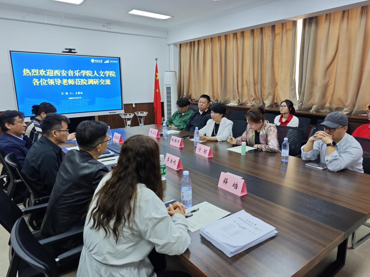 随后,师生一行前往河南大学音乐学院开展调研交流。双方围绕学院历史沿革、学科建设、人才培养、科研发展、AI技术在教学中的创新应用以及学生就业发展、就业渠道拓展等话题展开深入研讨,并重点交流了艺术类学生就业导向、实践平台搭建、职业素养培育等内容,进一步探讨了未来在师生互访交流、联合田野调查、协同学术研究、就业资源共享等方面工作内容。此次调研交流增进了两校音乐学院的相互了解,有效拓宽了育人与就业工作思路,为实现优势互补、资源共享、协同发展搭建了坚实沟通桥梁。随后,师生一行参观了宋城墙校门、博文楼、博雅楼、斋房等见证了河南大学深厚底蕴和百年历史的建筑群。