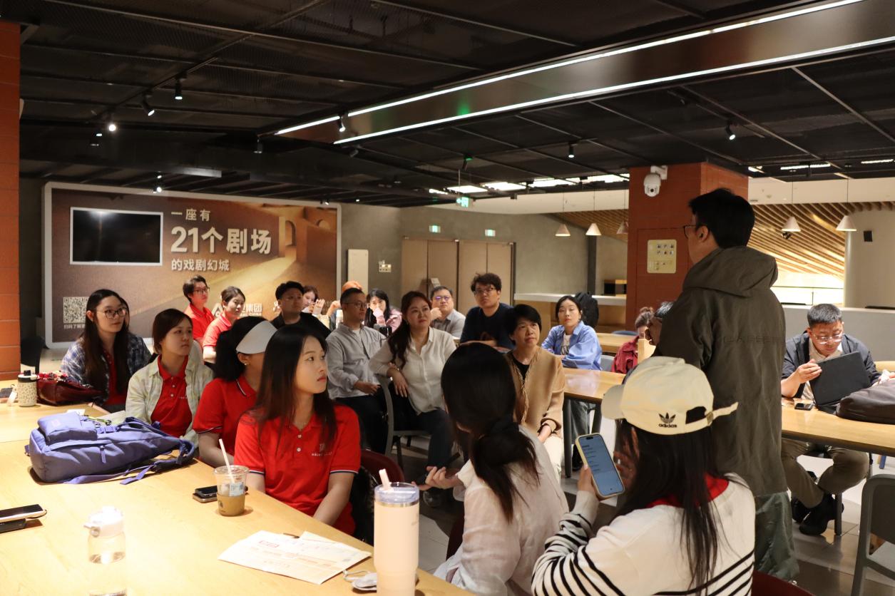 在与园区运营团队的专题座谈中,双方围绕文旅项目运营模式、商业逻辑、品牌打造、艺术创新以及文旅行业人才需求、岗位设置、职业发展路径、实习就业合作等内容深入交流。同学们结合专业特色主动提问,切实了解文旅演艺、文创运营等领域的行业现状与就业前景,深化了对当代演艺产业与文旅产业生态的整体认知。此次实地调研既丰富了专业教学研究的鲜活案例,也拓宽了学生行业视野与就业认知,为相关专业人才培养、实习实践对接和就业方向拓展奠定了良好基础。
